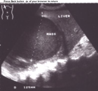 abdominal ultrasound. A single, round,